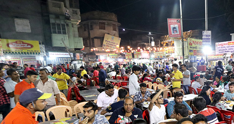 As night falls, this market changes into a food market with stalls selling delicious street food of Gujarat and the best part is that you can have food here till as late as one in the night. Some of the food items people relish here are kulfi, bhaji pav, varieties of dosas and sandwiches like pineapple and ghoogra sandwich. Regular patrons to this place swear by the Jamun shots and Gwalior dosa that you get here. The market serves only vegetarian food.